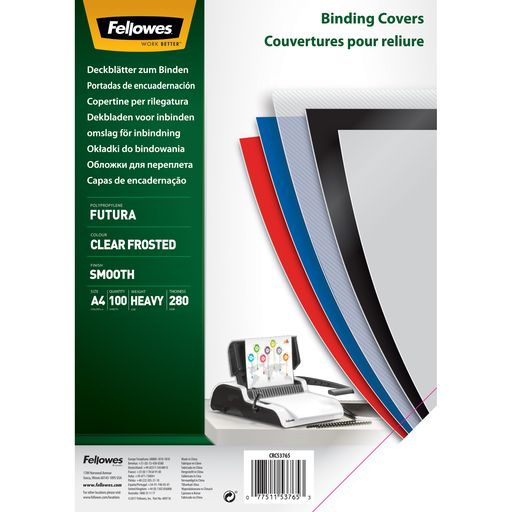 Gennemsigtige PVC covers fra Fellowes til indbindning af A4 dokumenter. Bruges typisk som cover til forsider men kan lige så vel benyttes som bagside. Kan bruges i alle metal og plastindbindningsmaskiner.