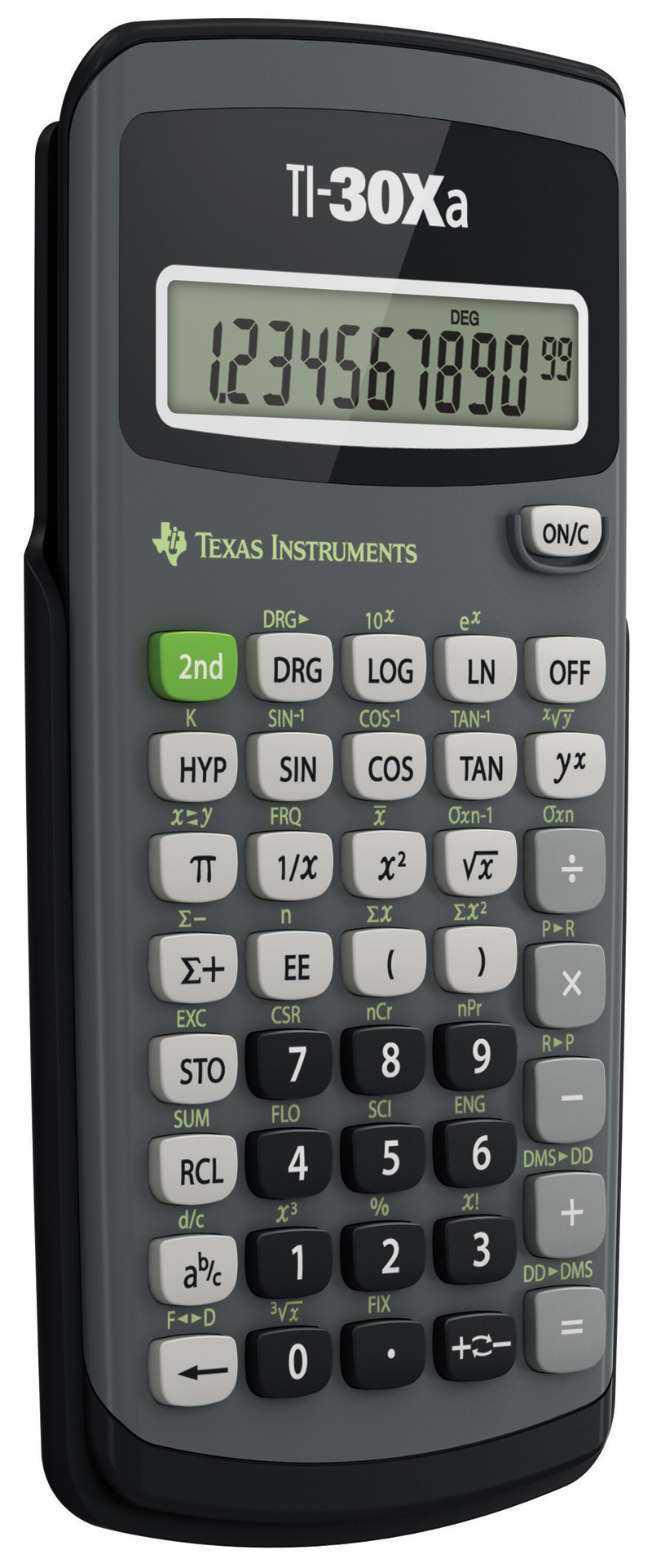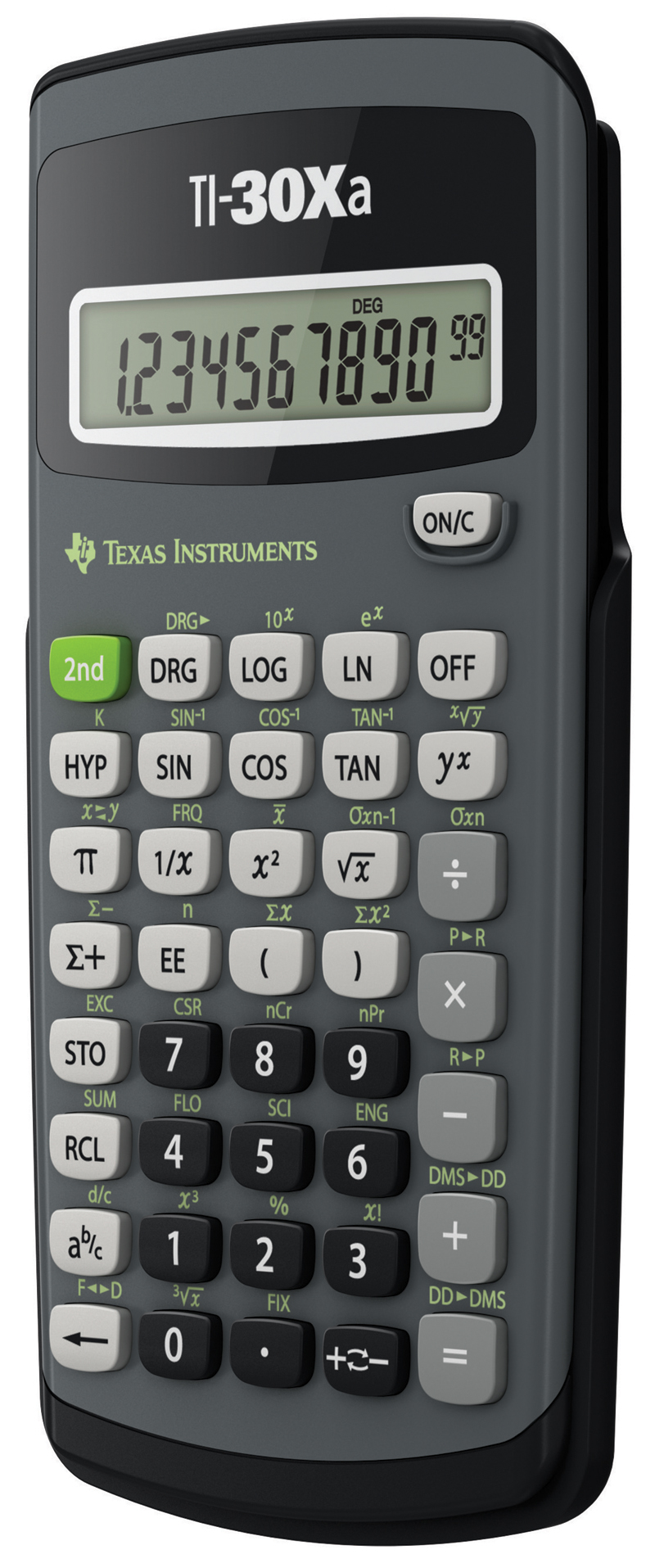 Grundlæggende batteridrevet funktionsberegner med enkeltlinjedisplay og funktioner til generel matematik og naturvidenskab. fra Texas Instruments