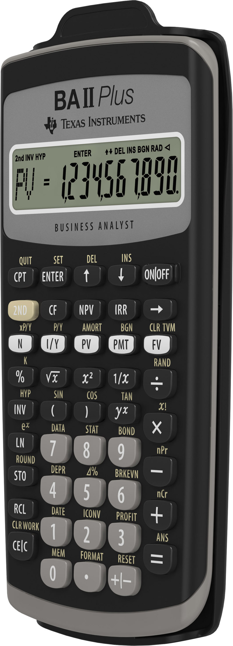 TI-BA II Plus Financial Calculator har en lang række indbyggede funktioner til at håndtere finansielle beregninger og matematiske analyser. Den kan løse time-value-of-money-problemer som f.eks. annuiteter realkreditlån leasing og opsparing samt generere afskrivningsplaner. Der kan udføres pengestrømsanalyser for op til 24 ujævne pengestrømme med høj frekvens og enheden beregner NPV og IRR.Brugeren kan vælge mellem to dagstællingsmetoder (faktisk/aktuel eller 30/360) til at beregne obligationskurser eller afkast til udløb. Der findes fire amortiseringsmetoder (SL SYD DB DB med SL-krydsning) samt amortiseringsplaner og obligationskurser. Displayet guider brugeren gennem de finansielle beregninger og viser den aktuelle variabel og label.Enheden har også en BGN/END-betalingsindstilling mellemårsfunktion og mulighed for at gemme op til ti brugerhukommelser. Det store ticifrede display gør det nemt at se resultaterne og den listebaserede statistik giver mulighed for analyse af både en og to variabler med fire regressionsmuligheder (lineær logaritmisk eksponentiel og potens). Til matematiske beregninger understøtter enheden trigonometriske funktioner naturlige logaritmer og potenser.Produktet leveres med et beskyttelsesdæksel der beskytter enheden mod snavs støv og skader når den ikke er i brug hvilket sikrer at den holdes i god stand og har en lang holdbarhed.